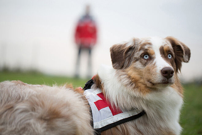 Die Rettungshundestaffel des DRK spürt Verschüttete auf und hilft bei der Suche nach vermissten Personen.